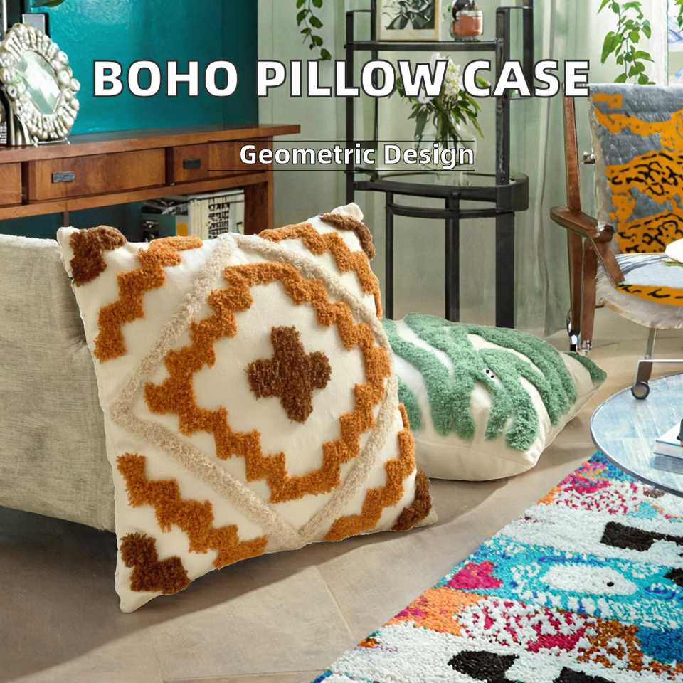 Housse de coussin carrée brodée en toile, style simplicité moderne, tuftée en usine, faite à la main, avec pompons à lignes épaisses, pour la maison, pour le marché international