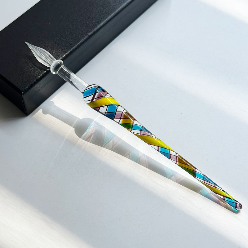 Usine Design Unique Coloré Damier Fenêtre Coupe Personnalisé À La Main En Verre Soufflé Dip Pen Calligraphie Écriture Dessin Dip Glass Pen