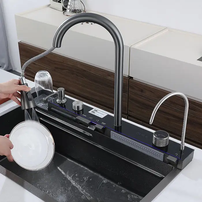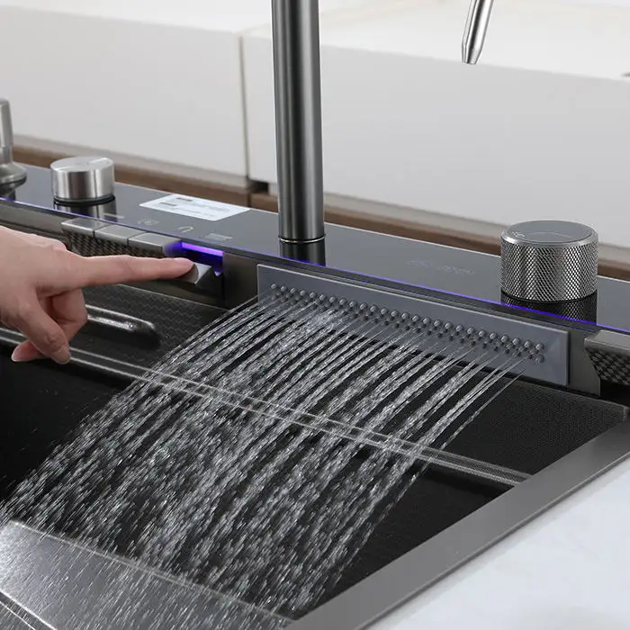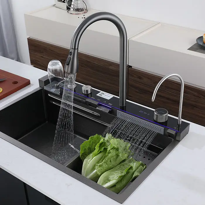 Évier de cuisine en acier inoxydable à cascade d'usine, évier de cuisine à cuve unique avec lave-gobelet