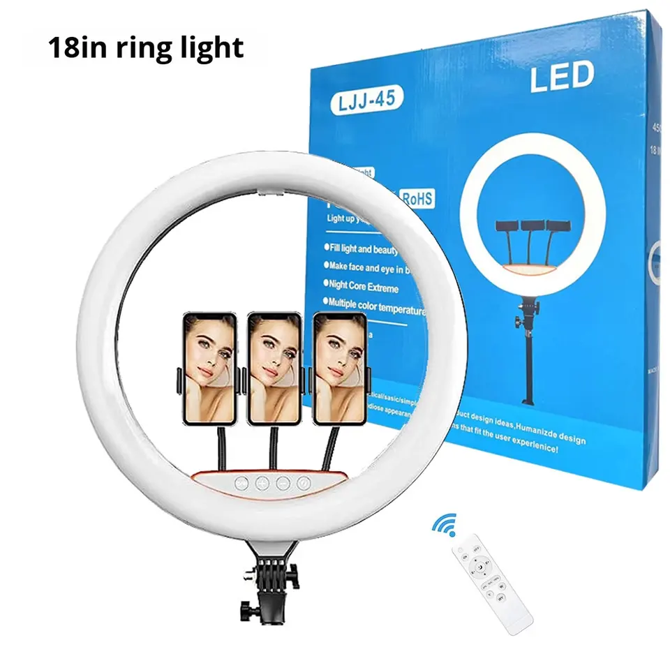 Anneau lumineux photographique de 18 pouces en gros d'usine, lampe vidéo personnalisée, anneau lumineux LED pour selfie, trépied avec télécommande