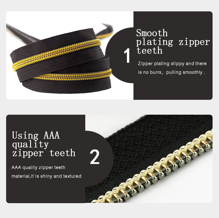 Usine en gros 3 #4 #5 #7 #8 #10 # or et argent or dents galvanoplastie dents par rouleau sacs valise Nylon fermeture éclair rouleau