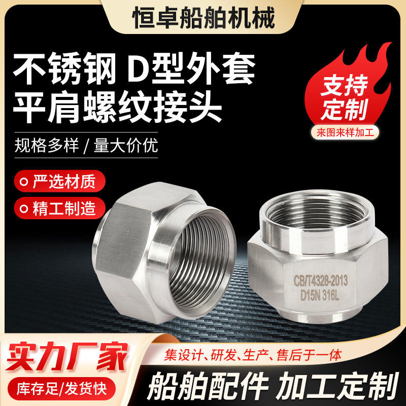Vente en gros d'usine, raccord fileté à épaule plate en acier inoxydable 304 de type D, CB56-83, quincaillerie marine