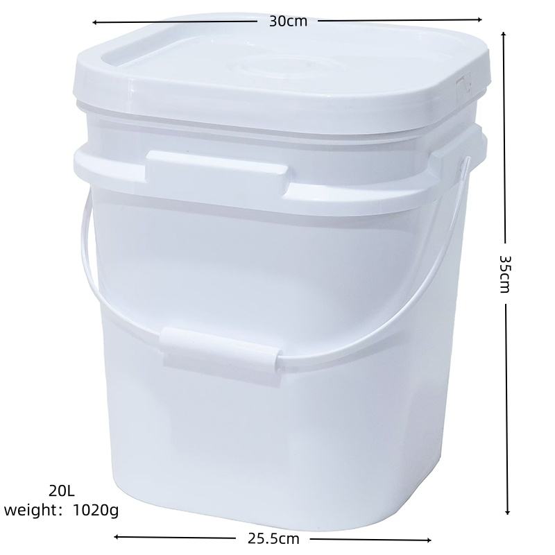Vente en gros d'usine, seaux carrés de 5 gallons, seaux, barils, seaux carrés en plastique de qualité alimentaire personnalisés de 20 litres avec couvercle