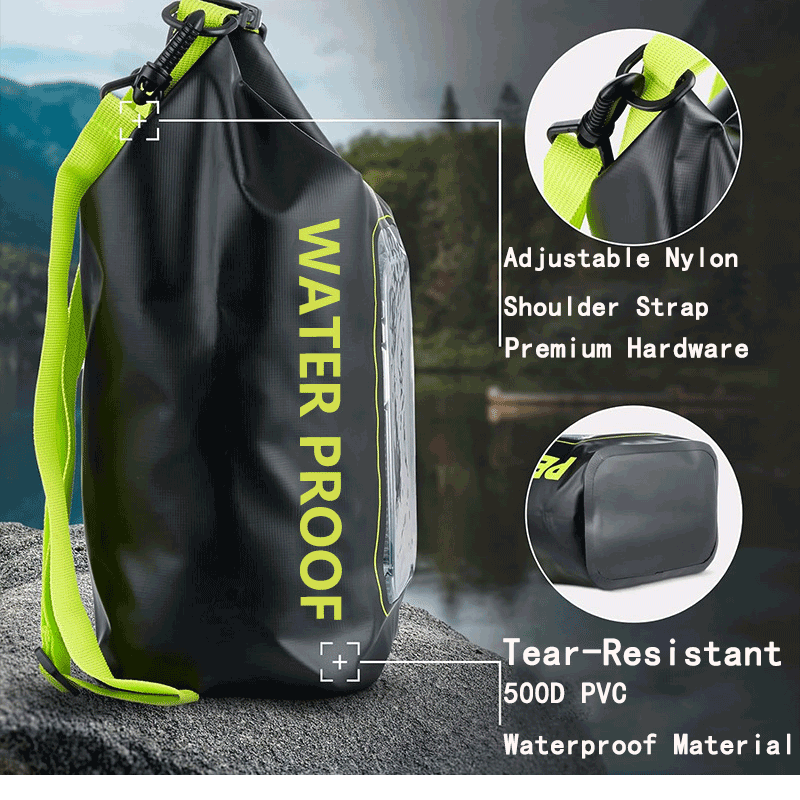 Usine en gros 5L PVC sac étanche étanche bandoulière avec poche transparente pour téléphone fenêtre pliable pour téléphone et portefeuille