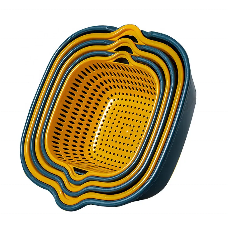 Usine en gros 6 pièces moderne en plastique cuisine Double lavabo fruits panier filtre eau bleu vidange panier