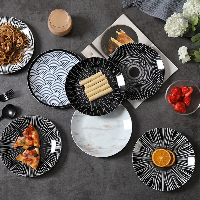 Usine en gros 8 "assiettes en céramique noire New Bone China Restaurant dîner ensembles plats et assiettes assiette à tapas en céramique