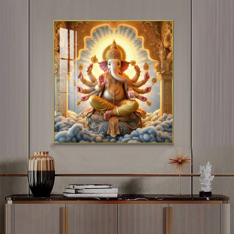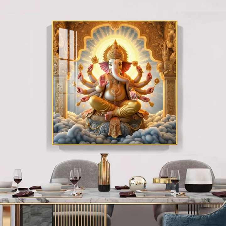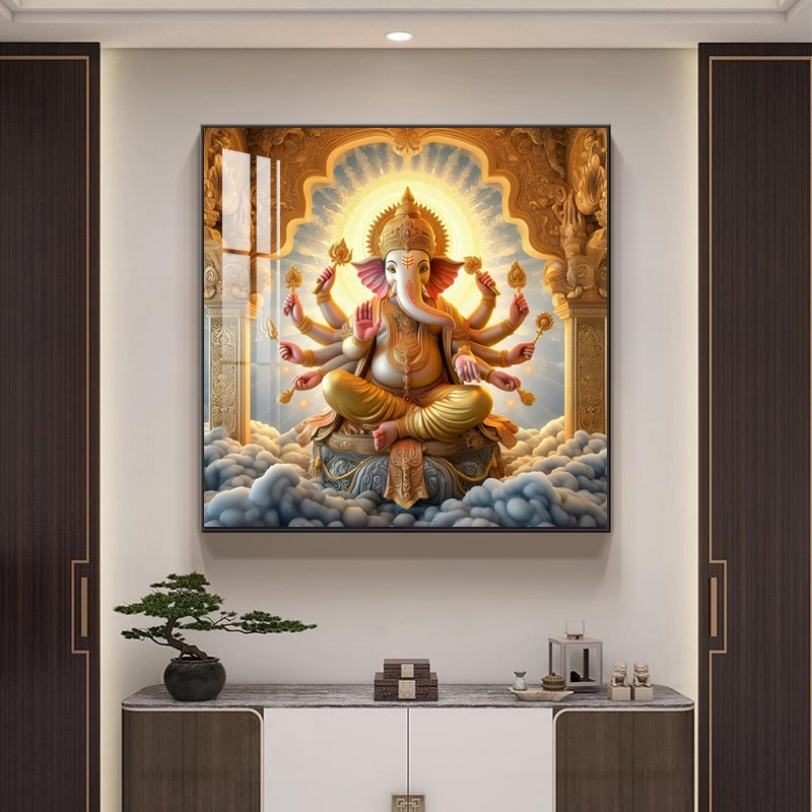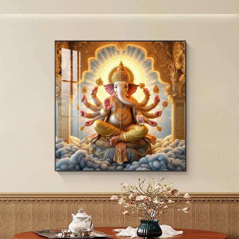 Peinture Murale LED en Porcelaine Carrée avec Motif Éléphant et Dieu Indien Abstrait, Décoration Murale Artistique en Métal, Vente en Gros Usine
