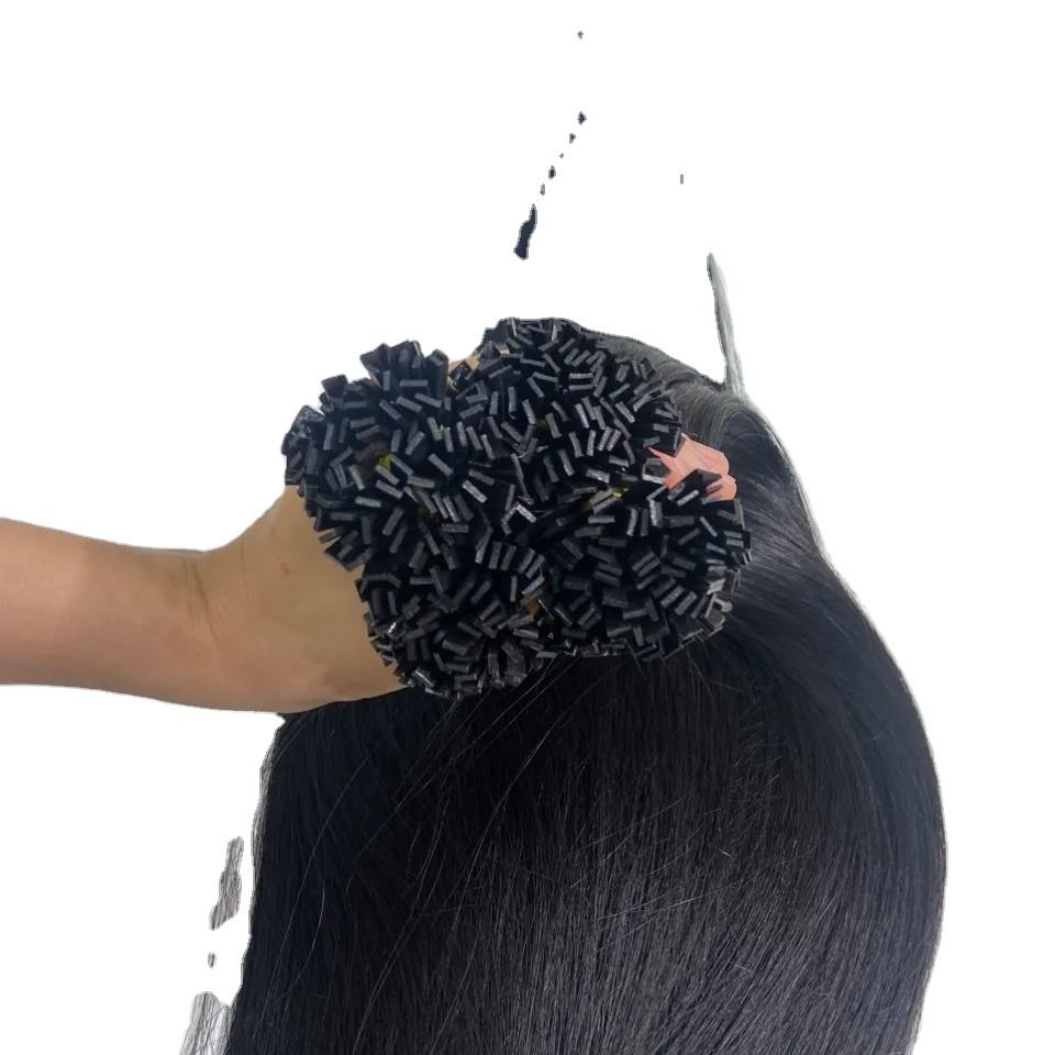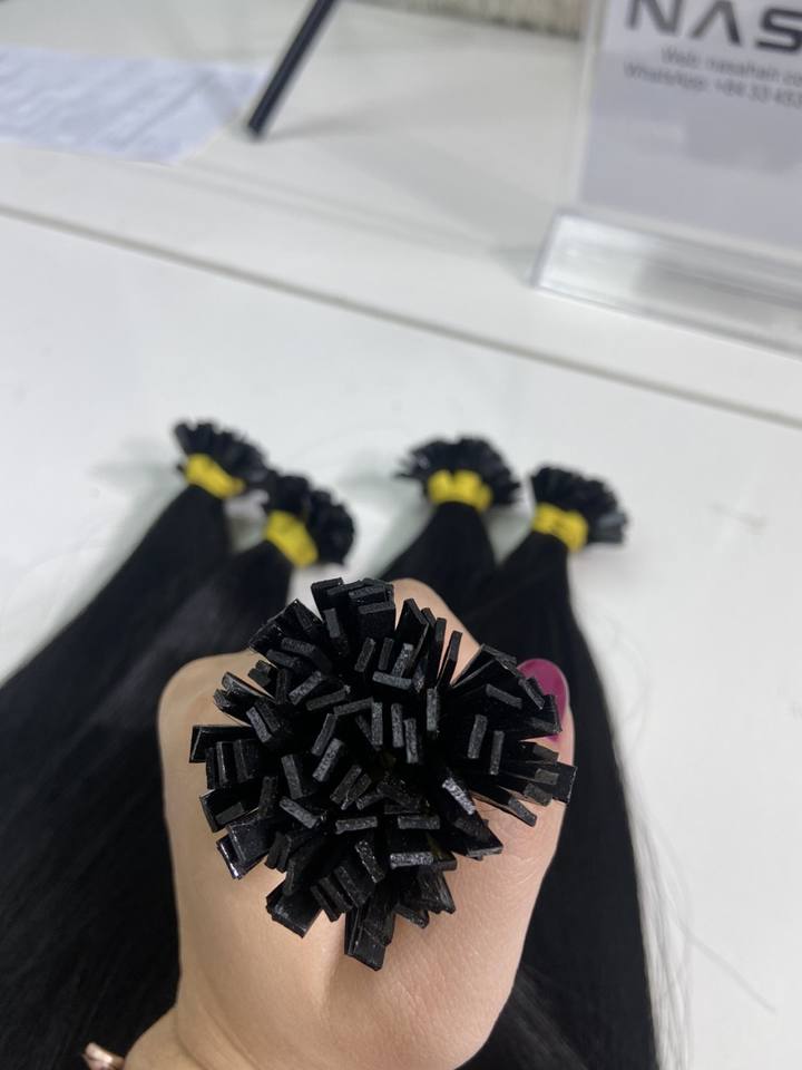 Extensions de cheveux humains à pointe plate de couleur noire en gros d'usine droites