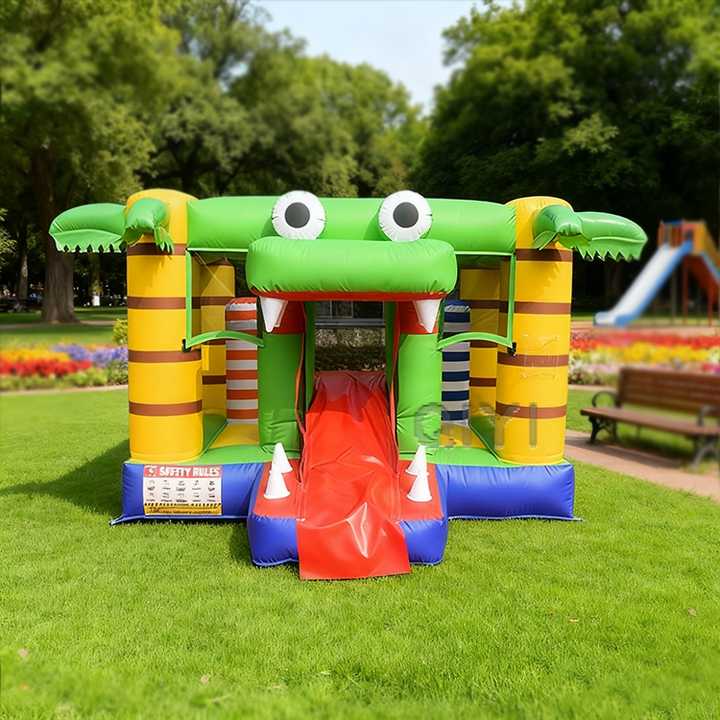Château gonflable rebondissant de style crocodile en gros d'usine, maison de saut avec toboggan