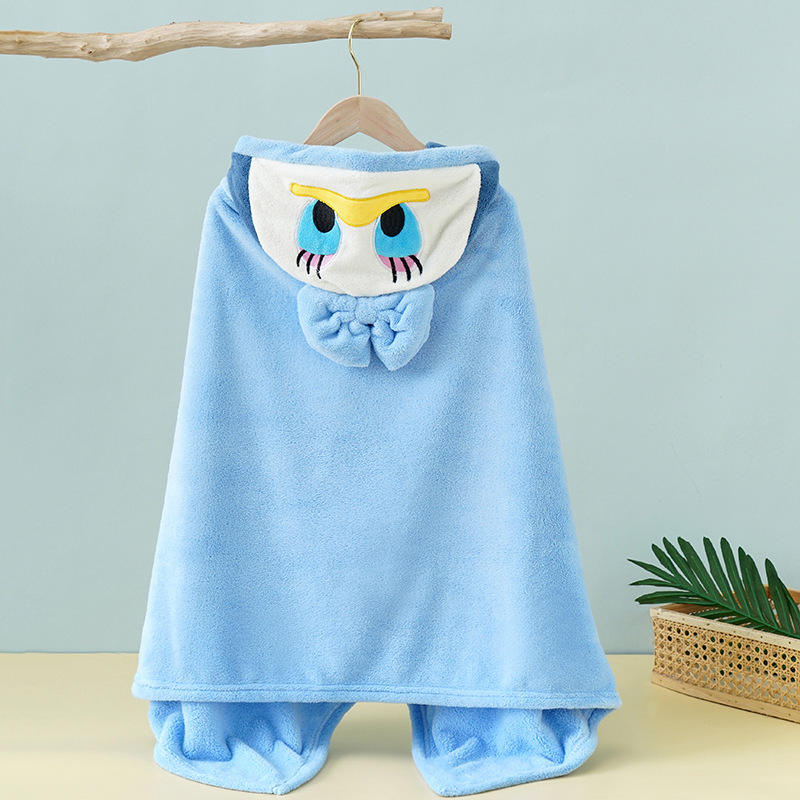 Vente en gros d'usine de poncho pour enfants à motif de dessin animé en molleton serviette de bain en microfibre avec capuche broderie douce