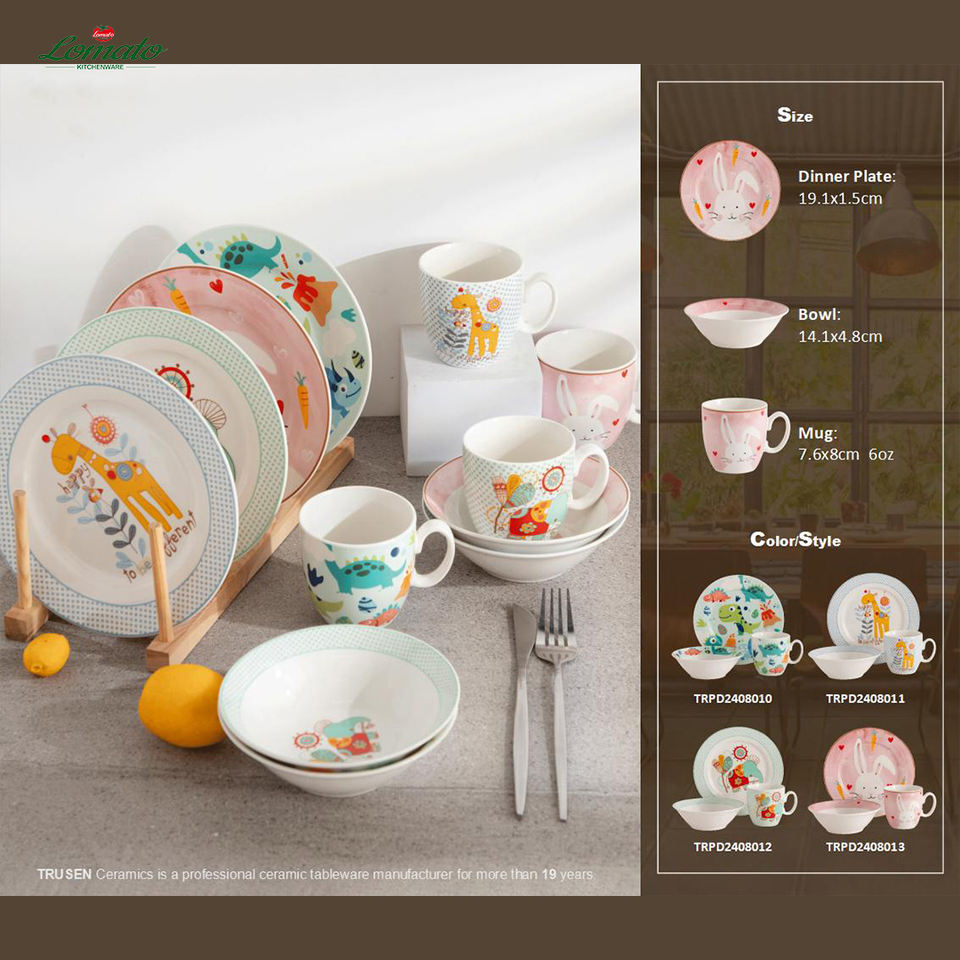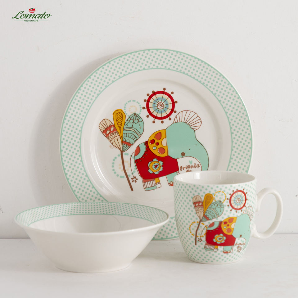 Vente en gros d'usine, ensemble de vaisselle en céramique pour enfants, dessin animé mignon, prix abordable, vaisselle en porcelaine pour table à manger