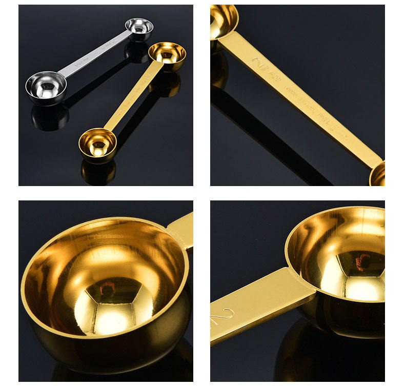 Cuillère doseuse multifonction double tête en acier inoxydable argent/or pour café et thé matcha, 15 ml/30 ml, vente en gros usine à prix abordable