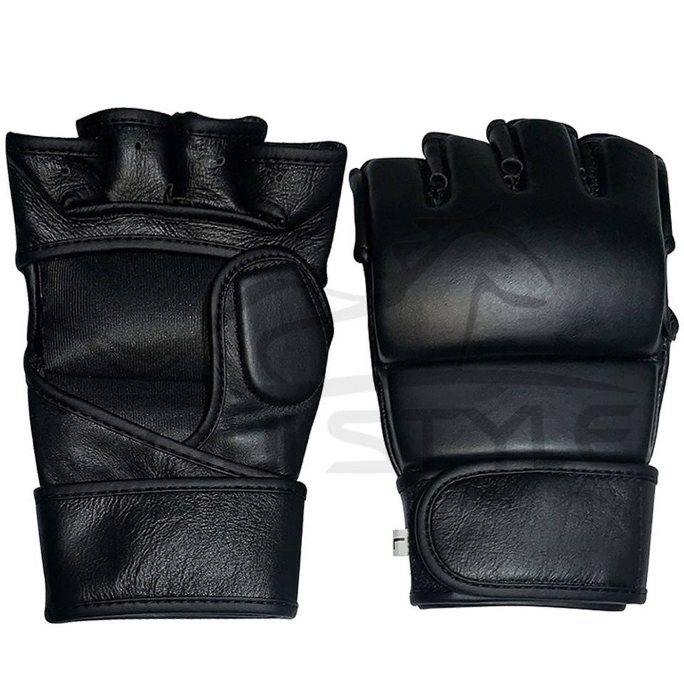 Gants de boxe MMA demi-doigts en cuir véritable avec impression personnalisée, gants d'entraînement MMA noirs prix de gros bon marché d'usine