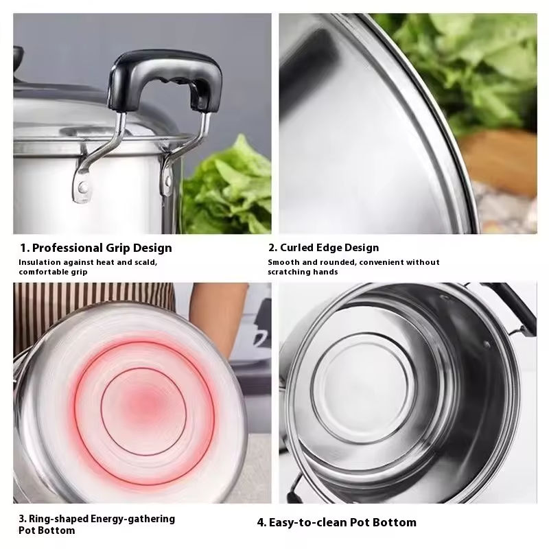 Vente en gros usine – Ensemble de cinq pièces en acier inoxydable au design classique, comprenant une marmite à soupe américaine profonde et épaissie pour la cuisine domestique