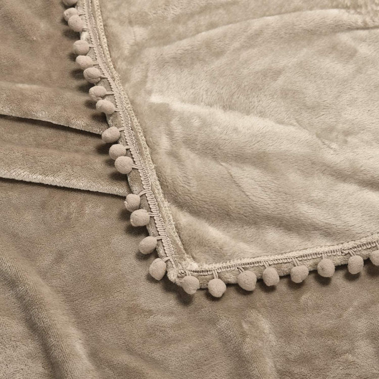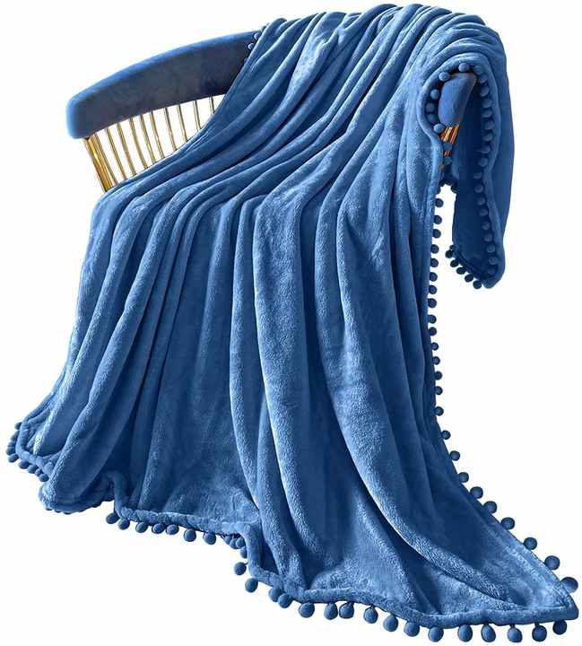 flannel blanket with pom pom