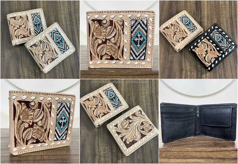 Product name:Hand Tooled Leather Beaded Men's Bifold Wallet