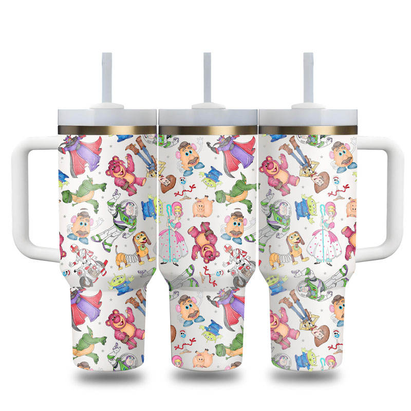 Bouteille d'eau isotherme en acier inoxydable de 40 oz avec couvercle et paille, motif dessin animé, vente en gros d'usine, conception personnalisée