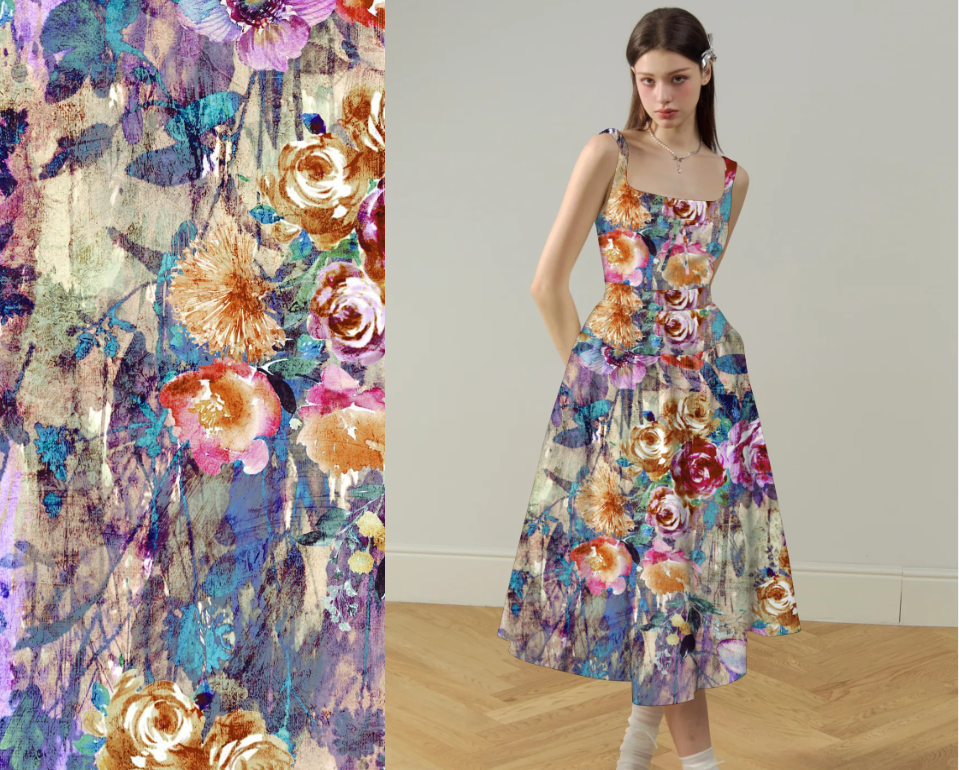 Tissu imprimé numérique floral en nylon et rayonne Crespo 125 g/m², conception personnalisée, vente en gros d'usine