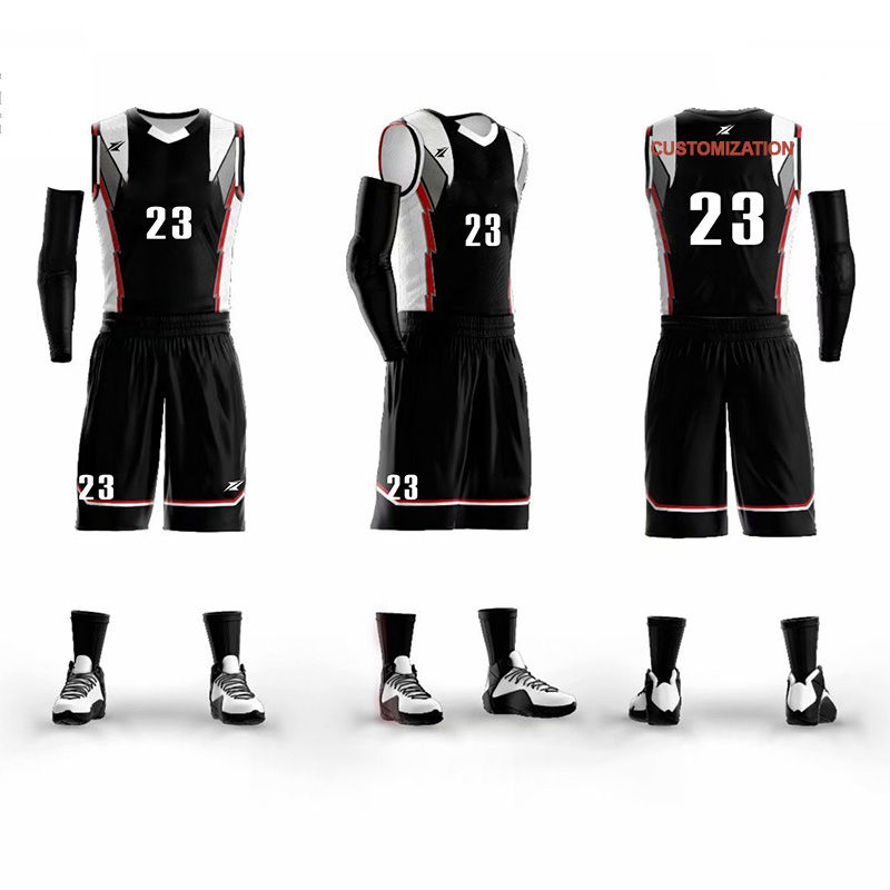 Usine En Gros Personnalisé Durable Respirant À Séchage Rapide Basketball Uniforme Les Adolescents Portent Des Uniformes De Basket Noir De Haute Qualité