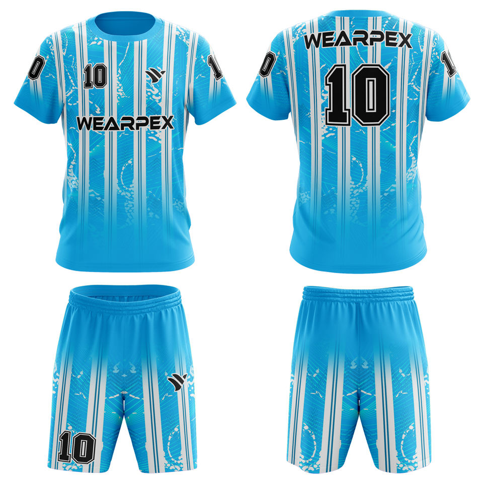 Ventes en gros d'usine, uniformes d'équipe de football personnalisés de haute qualité, maillot de football bleu et blanc, maillot de football pour jeunes, maillot de football pour hommes
