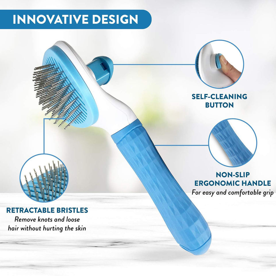 Brosse de toilettage autonettoyante pour animaux de compagnie (chats et chiens) en acier inoxydable et plastique, avec logo personnalisé, vente en gros d'usine