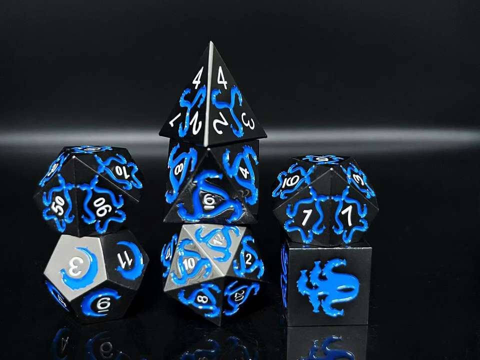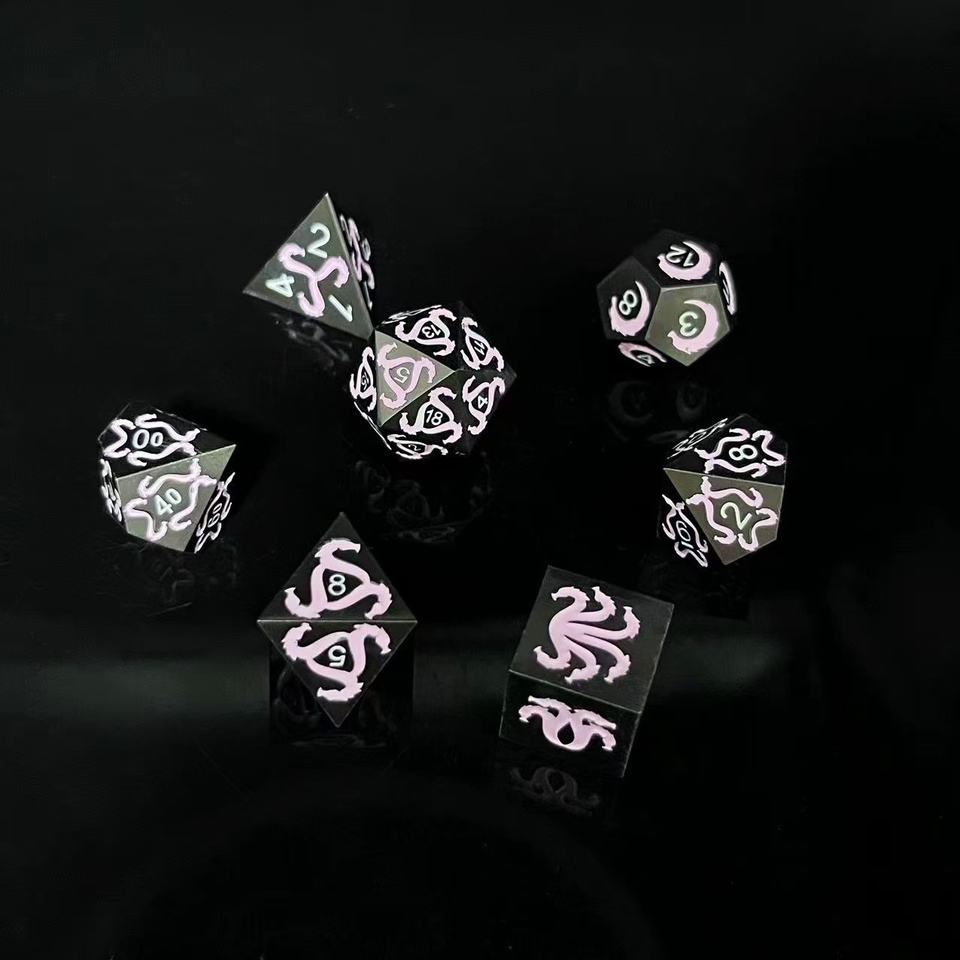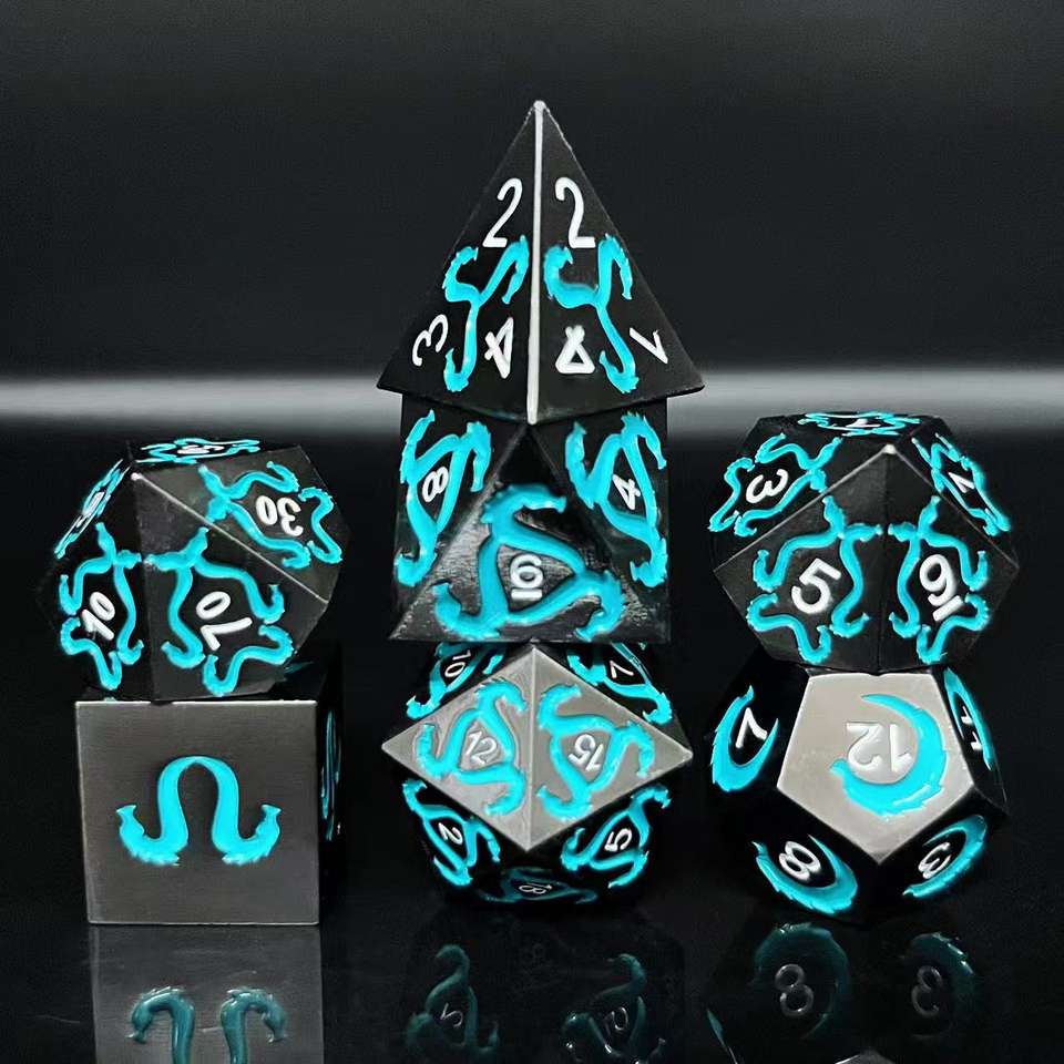 Usine en gros personnalisé métal polyédrique mdn dés ensemble 7 Die Sharp Edge Figurines pour jeux de rôle D & D
