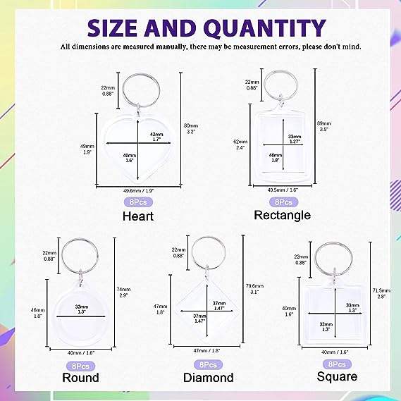 Vente en gros d'usine Cadre photo personnalisé Porte-clés en acrylique transparent Porte-clés vierge