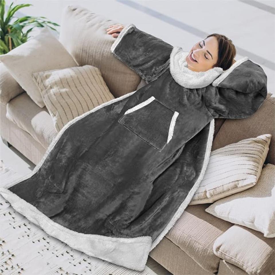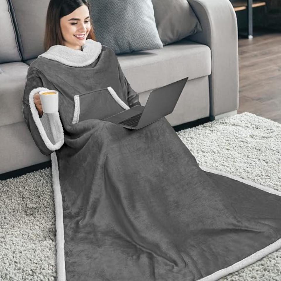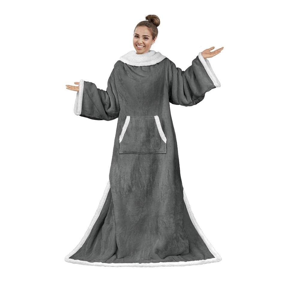 Couverture portable personnalisée en gros d'usine pour couverture Sherpa double couche d'hiver King Size avec manches couvertures en flanelle TV