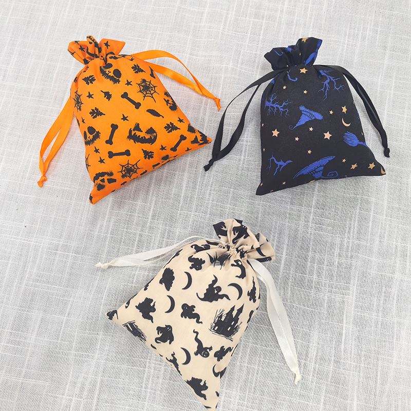 Vente en gros d'usine, personnalisable, 15*20cm, trois couleurs, recyclable, double aiguille, bouche de champignon, Halloween, vacances, pour le stockage de bonbons