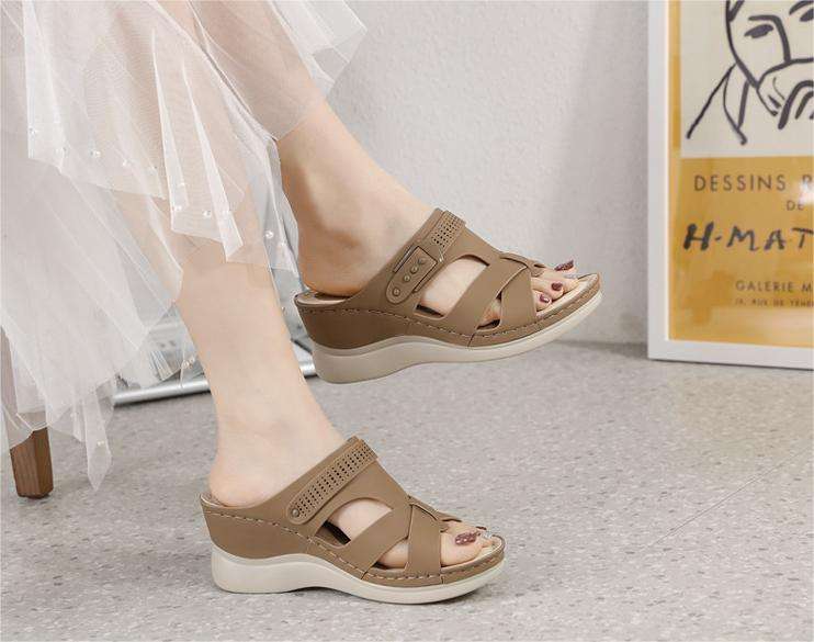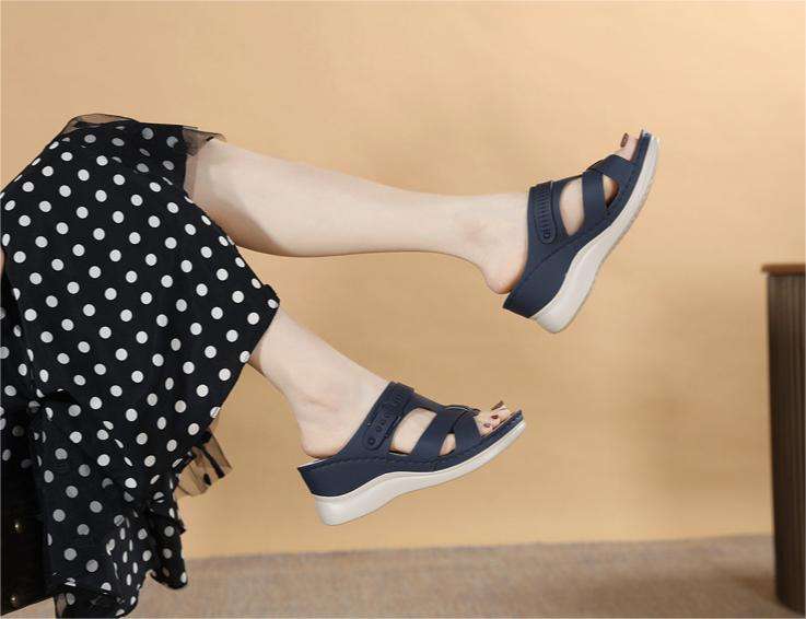 Sandales compensées tendance en PU pour femmes, personnalisables, vente en gros d'usine, nouvelle collection 2024