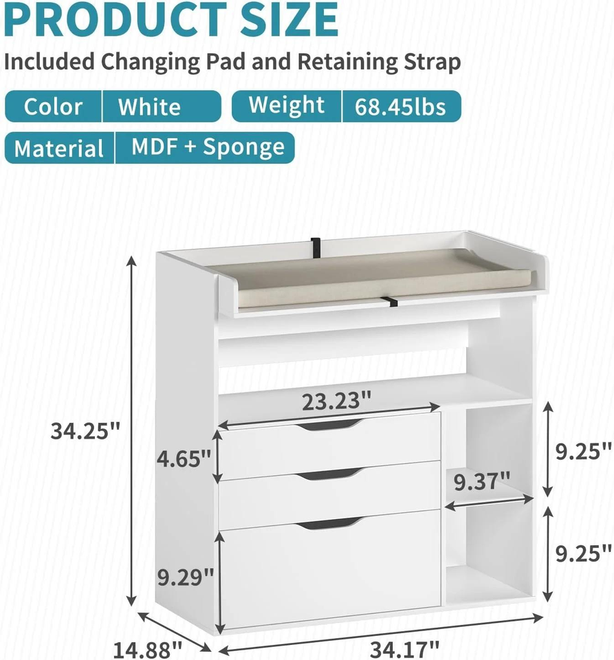 Table à langer pour bébé en MDF blanc, fabrication en gros, personnalisation, avec 3 tiroirs et étagères de rangement, commode de puériculture sécurisée