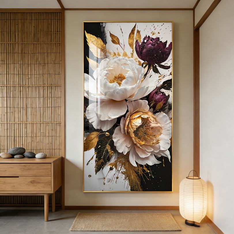 Peinture LED en porcelaine de cristal pour décoration murale de salon, motif floral, impression HD personnalisée, vente en gros d'usine