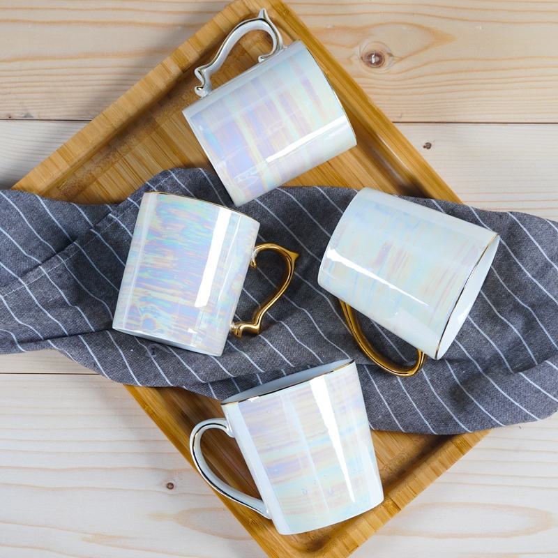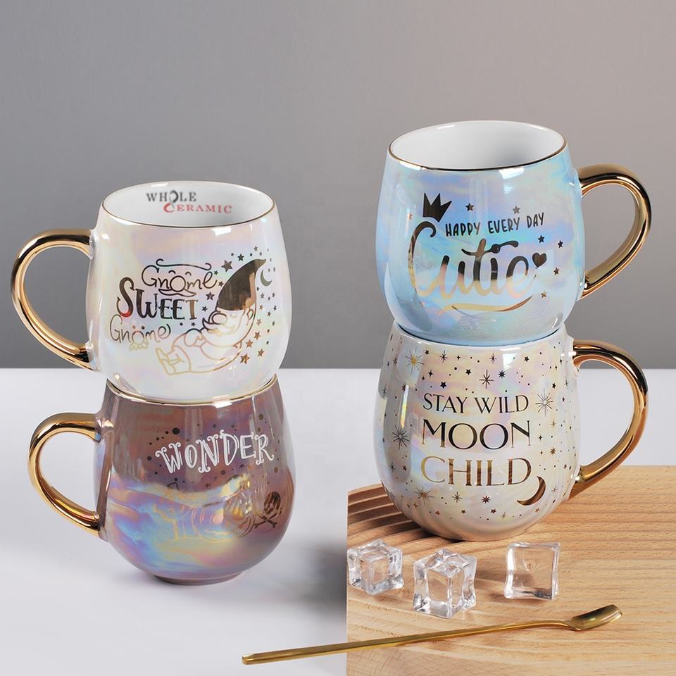 Tasse à café et thé en céramique émaillée de perles colorées assorties personnalisées en gros d'usine avec poignée en or plaqué bureau à domicile utilisé