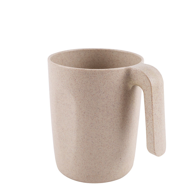 Tasse à bière en plastique empilable de couleur personnalisée en gros d'usine avec poignée composée de tasses à thé et soucoupes en paille de blé PP