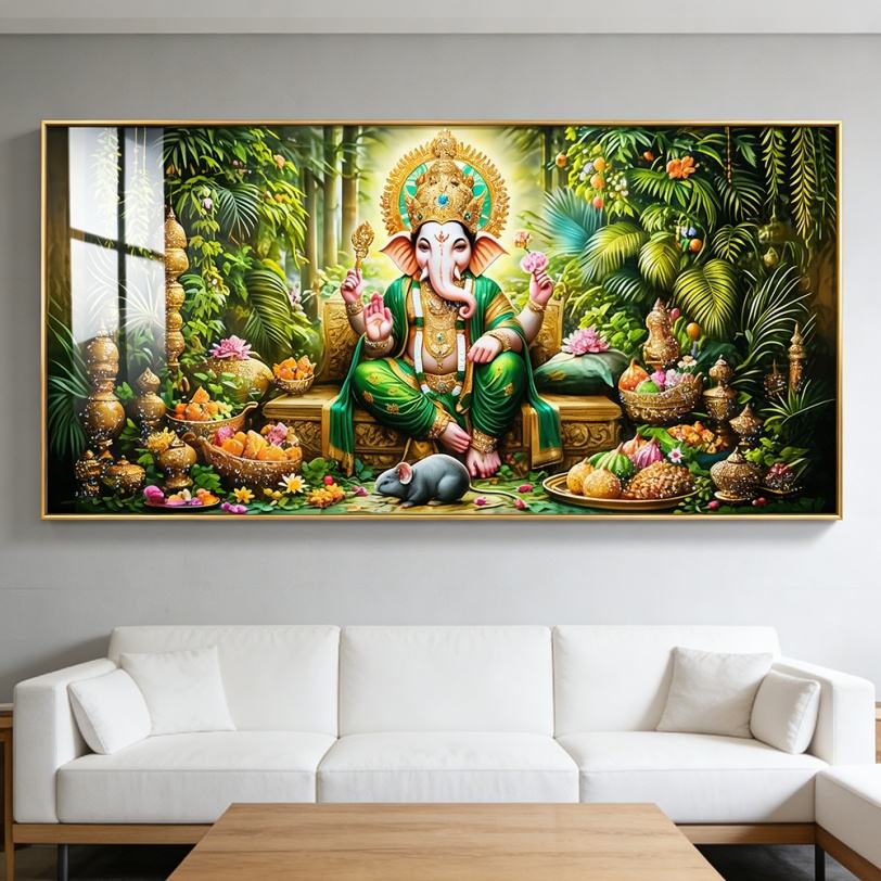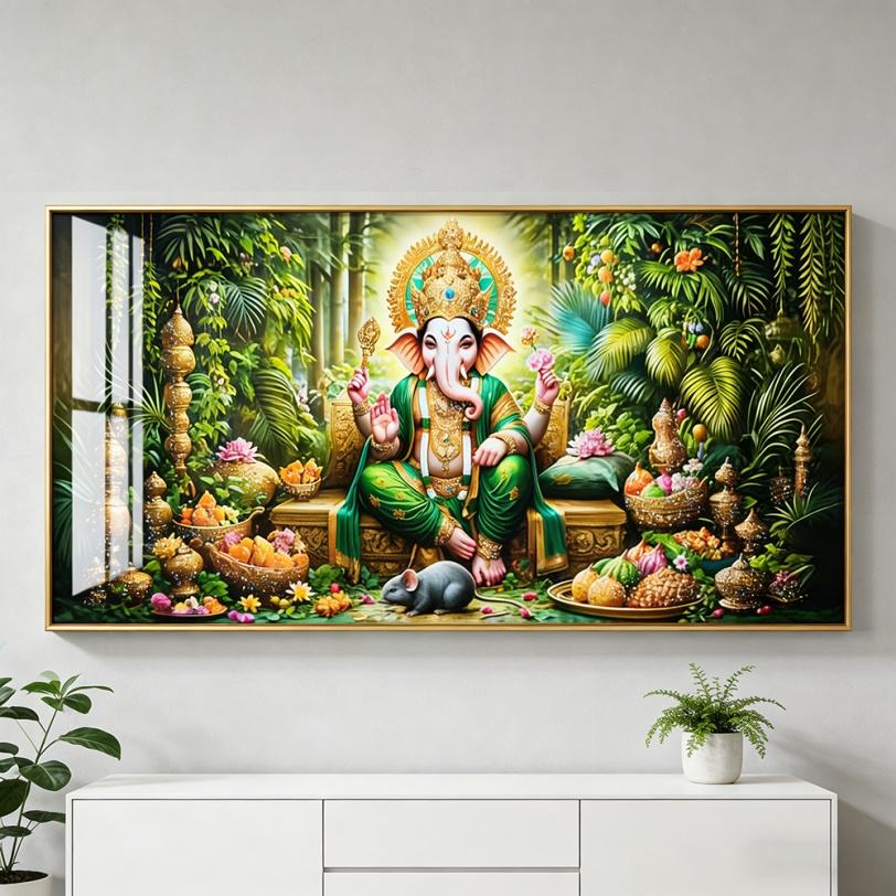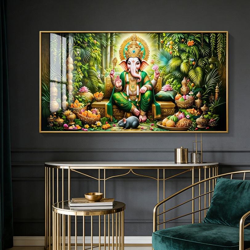 Vente en gros d'usine, peinture murale islamique personnalisée en cristal de porcelaine verte avec éléphant, cadre en alliage d'aluminium LED, décoration intérieure