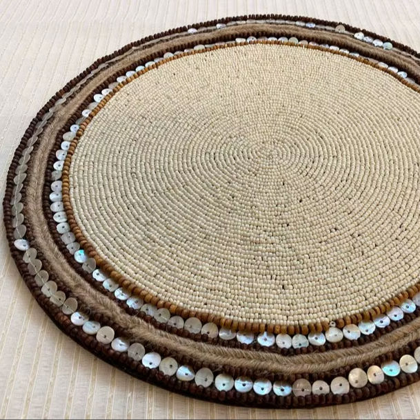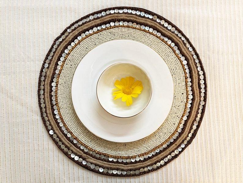 Vente en gros d'usine, sets de table en plastique perlé de style zen asiatique, écologiques et luxueux, brodés, diamètre 500 mm, décoration d'intérieur