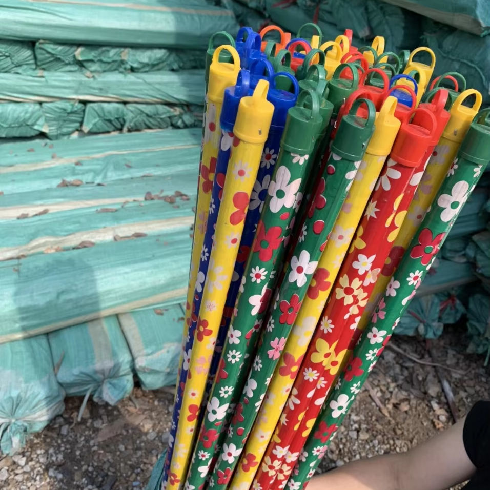 Factory Wholesale Eucalyptus Wooden Broom Handle with PVC Wrapped Floral Design, Durable Wooden Mop Stick for Cleaning Tools
