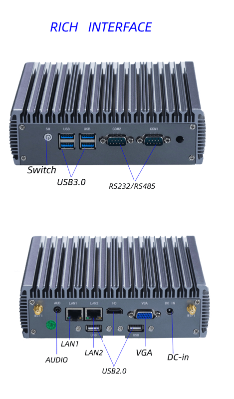 Vente en gros d'usine Mini PC sans ventilateur de qualité industrielle Mini ordinateur Core I3 I5 I7 J1900 J6412 J4215 bureau en option étanche