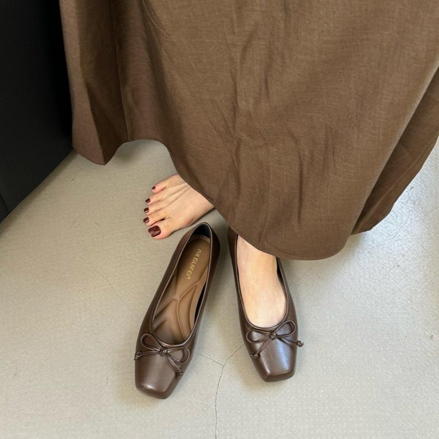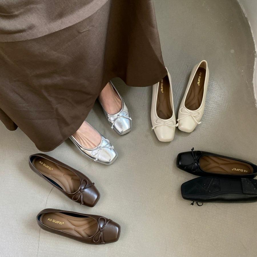 Vente en gros usine Ballerines plates argentées à bout carré et souple, à enfiler pour femme