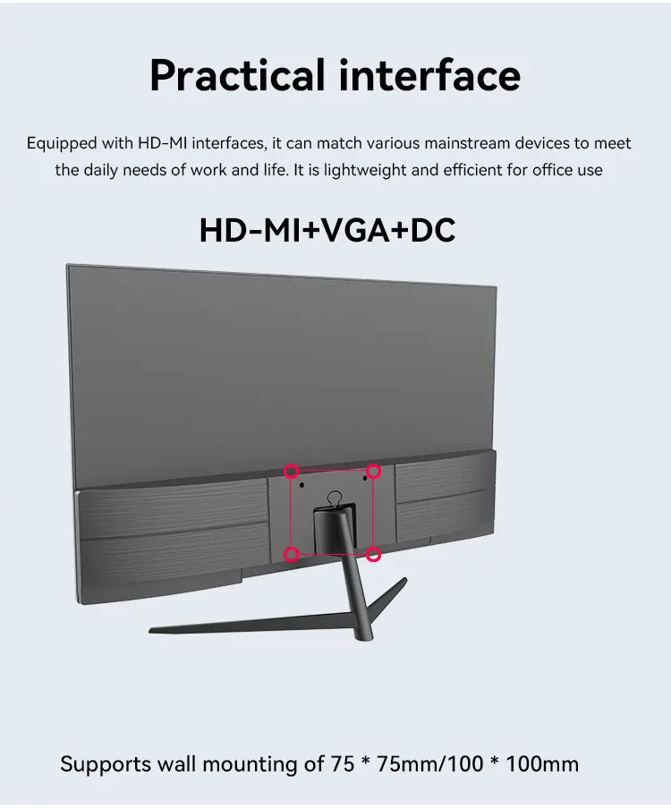 Moniteur de jeu en gros d'usine, écran LCD 27 pouces 75Hz, moniteur d'ordinateur de bureau LED sans cadre pas cher