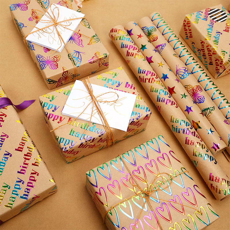 Papier d'emballage cadeau en gros d'usine 43*300 cm papier d'emballage de gaufrage emballage en papier kraft coloré