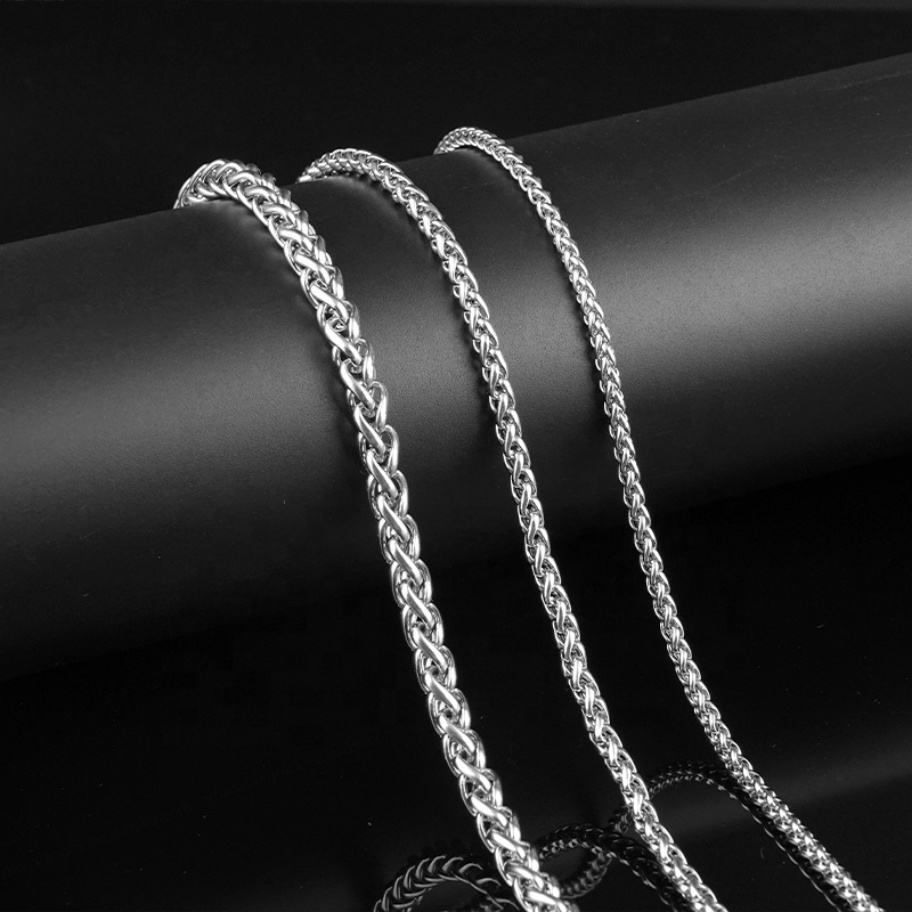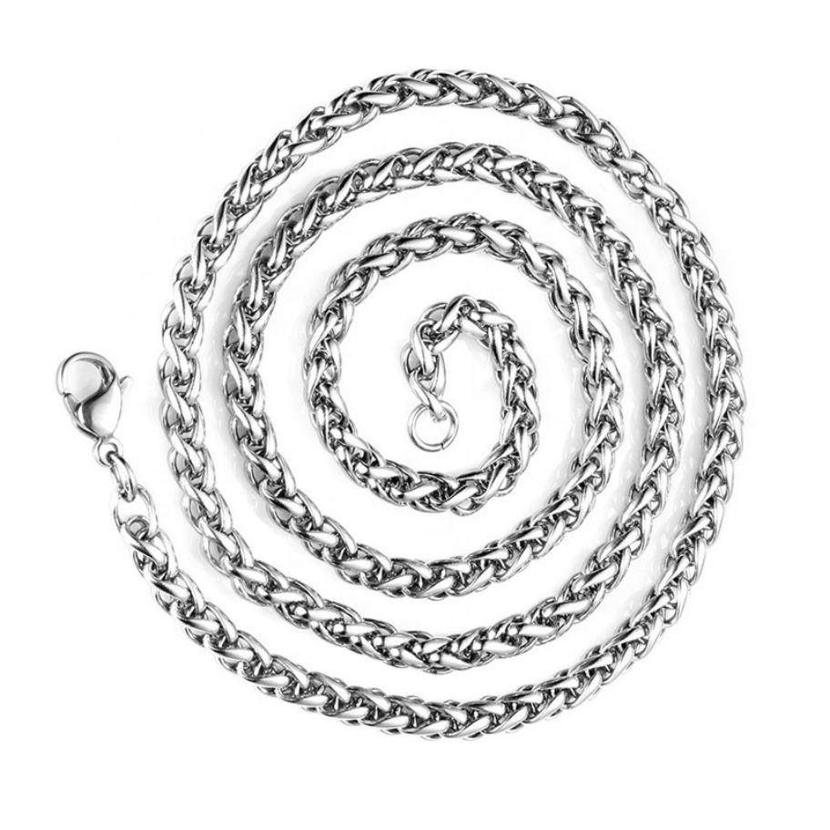 Chaîne en or massif 18 carats en gros d'usine, colliers en acier inoxydable avec chaîne blé chirurgicale en or rose massif, fabrication OEM/ODM directe usine