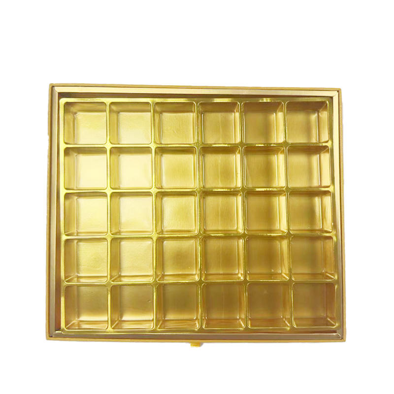 Boîte à chocolats dorée en gros avec fenêtre transparente, plateau coulissant et séparateurs en plastique pour pralines, bonbons, panier cadeau de mariage