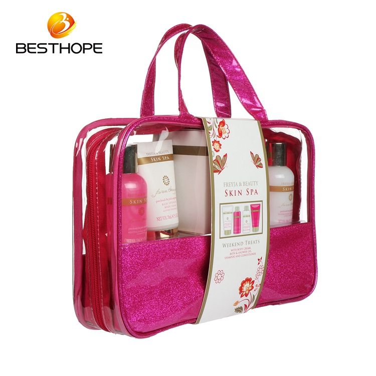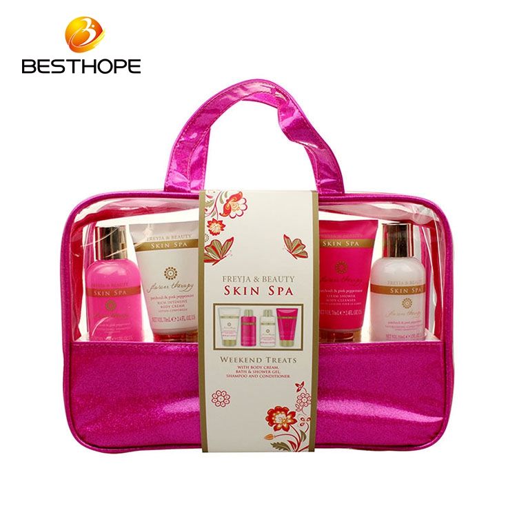 Contenu:Shampooing, après-shampooing, gel douche, crème pour le corps et sac