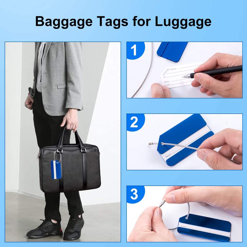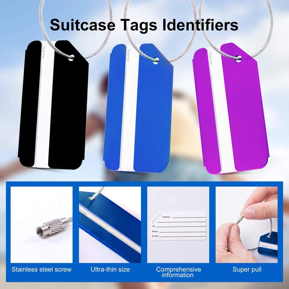 Étiquettes de bagages personnalisées en alliage d'aluminium de haute qualité, à la mode, avec porte-carte d'identité et boucle en acier inoxydable, résistantes à l'eau - Vente en gros usine
