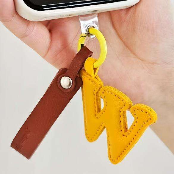 Usine en gros de haute qualité en cuir A-Z Alphabet lettre porte-clés avec sangle pour la décoration de téléphone