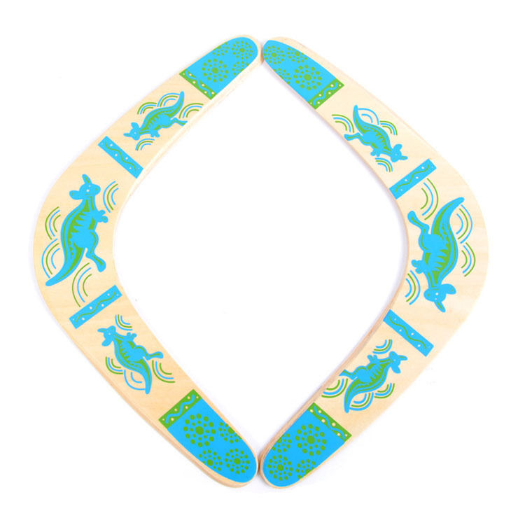 Usine en gros Offre Spéciale dessin animé Logo personnalisé enfants Style australien jouets de plein air en bois Boomerang