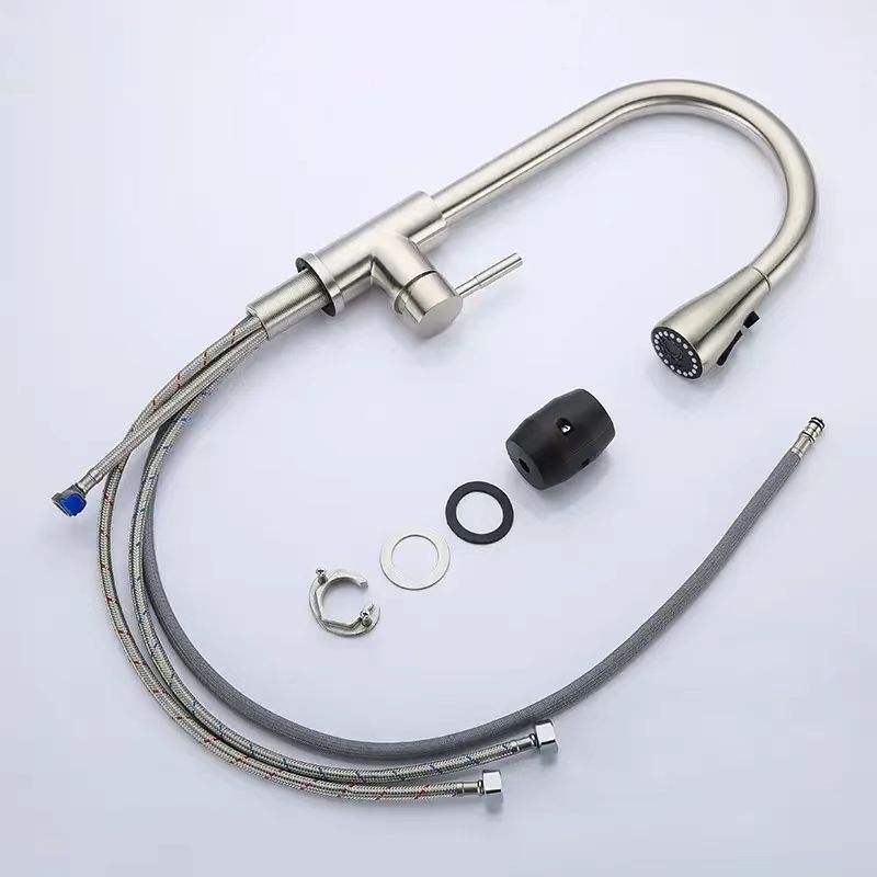 Robinet de cuisine en acier inoxydable 304 avec noyau en céramique, à tirette unique, pour eau chaude et froide, à trois vitesses, vente en gros d'usine