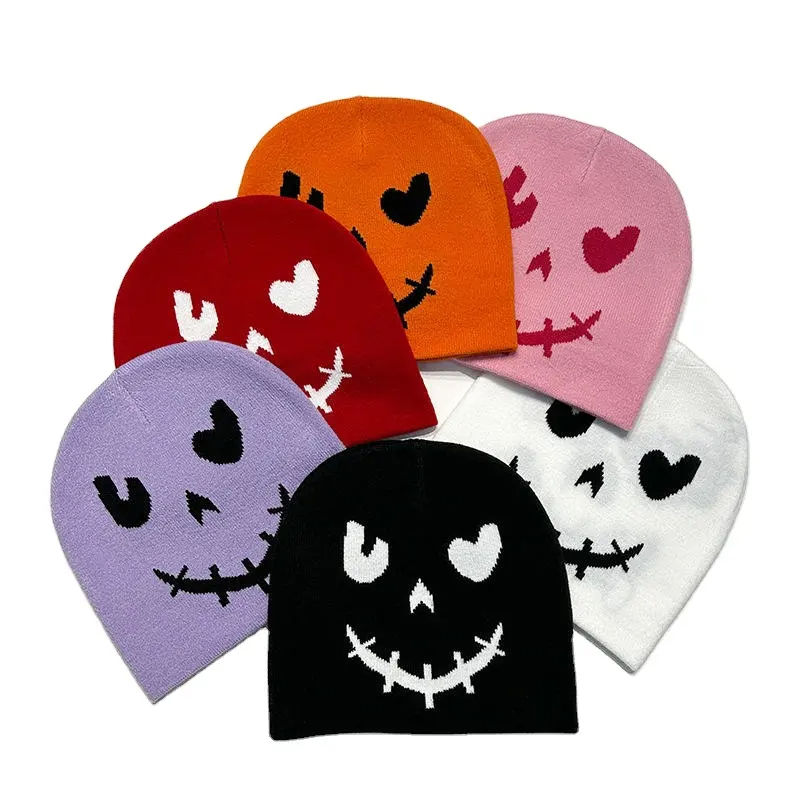 Bonnet tricoté en gros d'usine porter une casquette d'hiver chaude dernière étiquette tissée Logo bonnets pêcheur crâne chapeaux casquette d'hiver