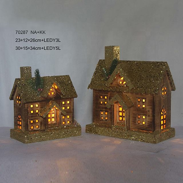 Type 2:Maisons de village de Noël en bois avec éclairage LED d'usine pour décoration